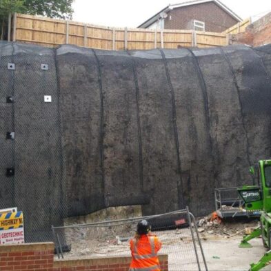 Project: Stabilisation of an existing 10m high chalk slope with soil nails, erosion matting and rock mesh.